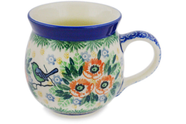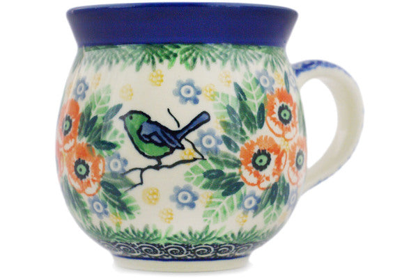 Polish Pottery 12oz Bubble Mug Green Breasted Kiskadees UNIKAT