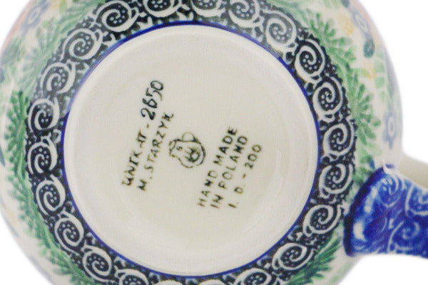 This is a Polish pottery Unikat (Signature) Bubble Mug, which means that it has been hand painted with both sponges and brushes and it is signed by the artist who painted it. Unikat pieces are the most intricate works of art. Larger Unikat items take hours of very careful work to finish.