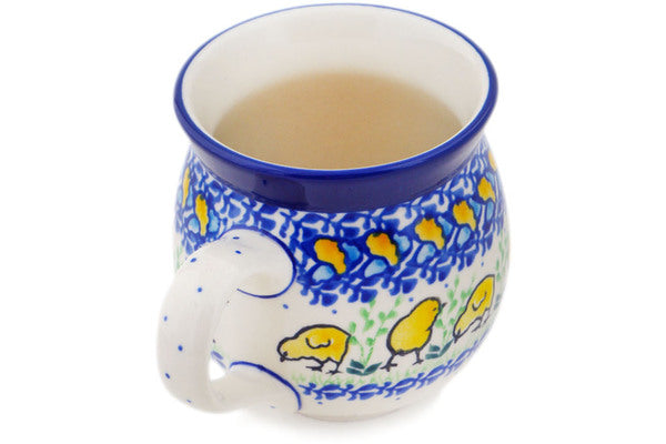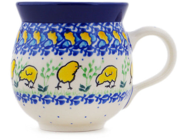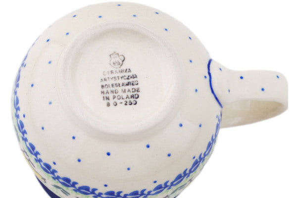 This Polish pottery Bubble Mug is made by Ceramika Artystyczna workshop in Boleslawiec, Poland. Manufacturer item number H9197Q. It is 3¾" high and measures 5" by 3¾". The capacity of this Bubble Mug is 12.2 oz when filled to rim and it weighs 0.8 lbs. It is part of the Hatched Collection.