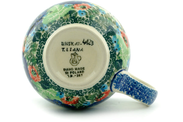 This is a Polish pottery Unikat (Signature) Bubble Mug, which means that it has been hand painted with both sponges and brushes and it is signed by the artist who painted it. Unikat pieces are the most intricate works of art. Larger Unikat items take hours of very careful work to finish.