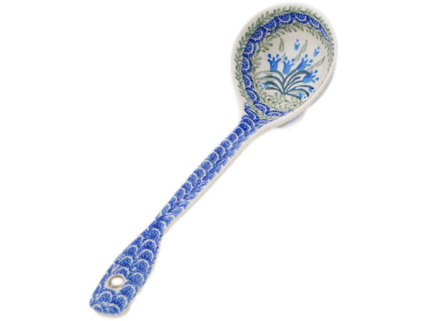 This Polish pottery Ladle is made by Ceramika Artystyczna workshop in Boleslawiec, Poland. Manufacturer item number H5461Q. It is 3" high and measures 12½" by 3½". The weight of this Ladle is 0.5 lbs. The pattern was designed by artist Jolanta Okraska. It is part of the Blue Tulip Collection.