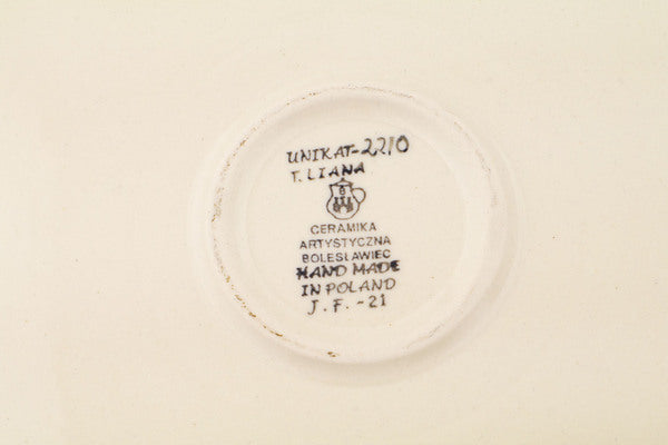 This is a Polish pottery Unikat (Signature) Platter with Handles, which means that it has been hand painted with both sponges and brushes and it is signed by the artist who painted it. Unikat pieces are the most intricate works of art. Larger Unikat items take hours of very careful work to finish.