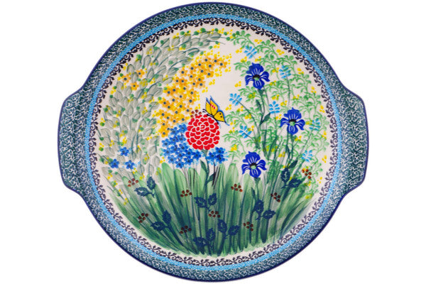Polish Pottery 13" Platter with Handles Spring Garden UNIKAT