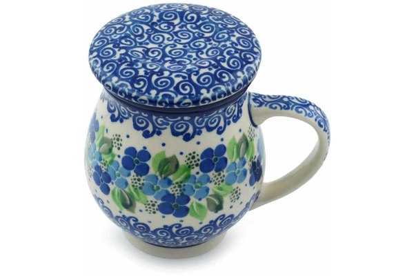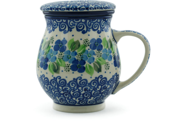 Polish Pottery 14 oz Brewing Mug Blue Phlox