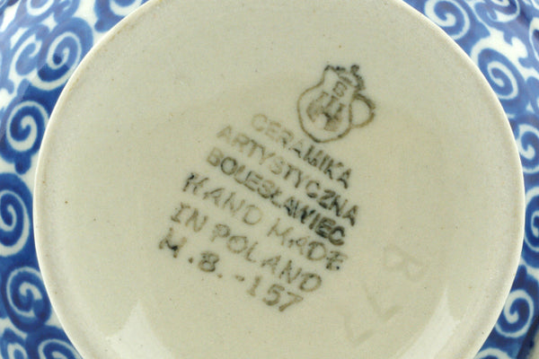 This Polish pottery Brewing Mug is made by Ceramika Artystyczna workshop in Boleslawiec, Poland. Manufacturer item number H0545I. It is 4¾" high and measures 5¼" by 4". The capacity of this Brewing Mug is 14.1 oz when filled to rim and it weighs 1.5 lbs. The pattern was designed by artist Agnieszka Damian. It is part of the Blue Phlox Collection.