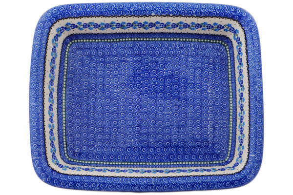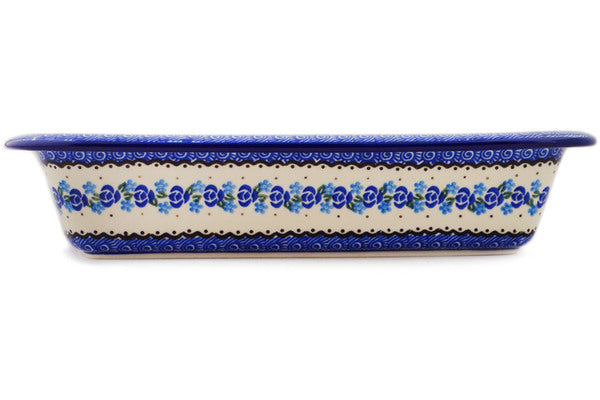 Polish Pottery 14" Rectangular Baker Blue Bud Sea