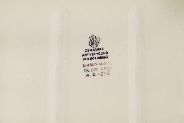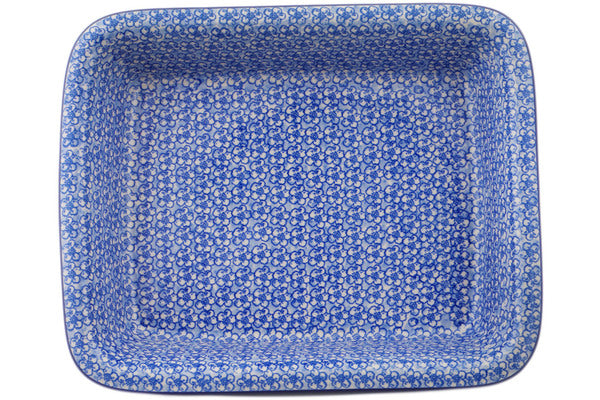 This Polish pottery Rectangular Baker is made by Ceramika Artystyczna workshop in Boleslawiec, Poland. Manufacturer item number H6034Q. It is 2¾" high and measures 13¾" by 11¼". The capacity of this Rectangular Baker is 100.9 oz when filled to rim and it weighs 4.8 lbs. It is part of the Magical Blue Collection.