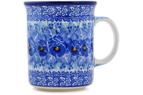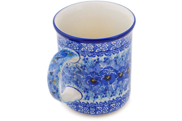 This Polish pottery Mug is made by Ceramika Artystyczna workshop in Boleslawiec, Poland. Manufacturer item number H6803Q. It is 4½" high and measures 5" by 3¾". The capacity of this Mug is 15.2 oz when filled to rim and it weighs 1.1 lbs. The pattern was designed by artist Maria Starzyk. It is part of the Deep Winter Collection.