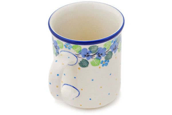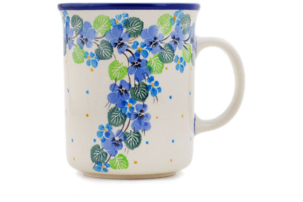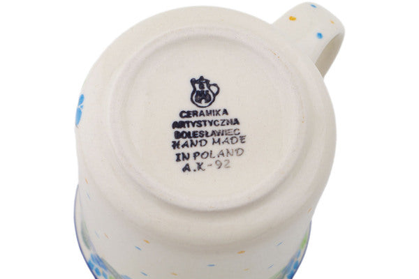 This Polish pottery Mug is made by Ceramika Artystyczna workshop in Boleslawiec, Poland. Manufacturer item number H6196Q. It is 4½" high and measures 5" by 3¾". The capacity of this Mug is 15.2 oz when filled to rim and it weighs 1.1 lbs. It is part of the Waterfall Blooms Collection.