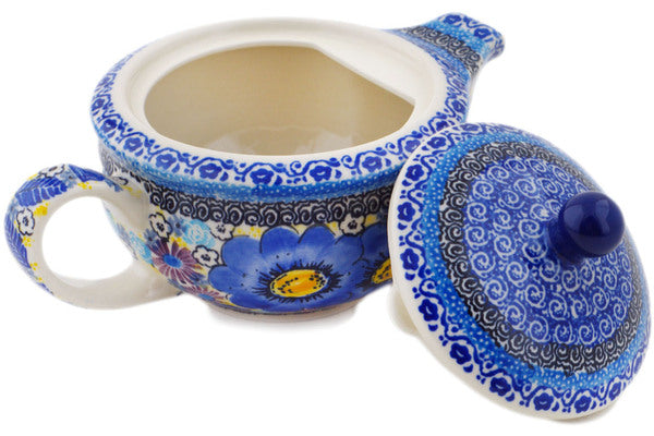 This Polish pottery Tea or Coffee Pot is made by Ceramika Artystyczna workshop in Boleslawiec, Poland. Manufacturer item number H2330Q. It is 4¾" high and measures 8" by 5". The capacity of this Tea or Coffee Pot is 15.2 oz when filled to rim and it weighs 1.3 lbs. The pattern was designed by artist MARIA STARZYK. It is part of the Joyful Meadow Collection.