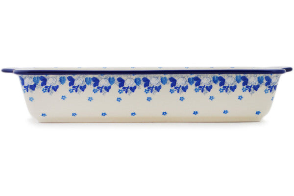 Polish Pottery 15" Rectangular Baker with Handles Blue Spring