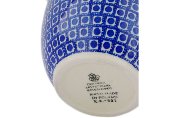 This Polish pottery Bowl with Loop-Handle is made by Ceramika Artystyczna workshop in Boleslawiec, Poland. Manufacturer item number H7551Q. It is 5½" high and measures 6¼" by 4½". The capacity of this Bowl with Loop-Handle is 15.8 oz when filled to rim and it weighs 1.1 lbs.