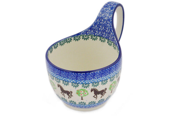 Polish Pottery 16 oz Bowl with Loop-Handle Stallion Trot