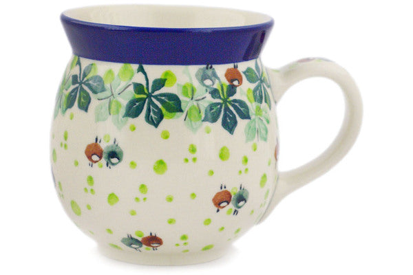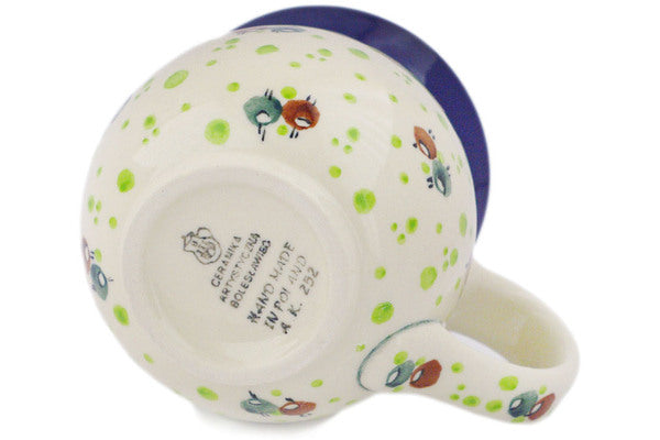 This Polish pottery Bubble Mug is made by Ceramika Artystyczna workshop in Boleslawiec, Poland. Manufacturer item number H4312Q. It is 4" high and measures 5½" by 4". The capacity of this Bubble Mug is 16.0 oz when filled to rim and it weighs 1.0 lbs.