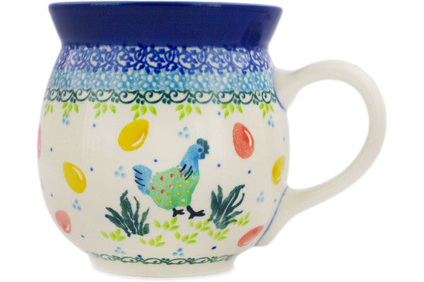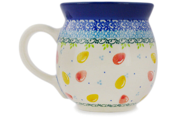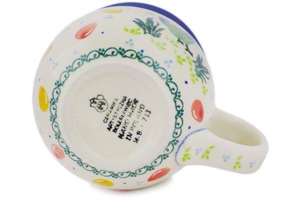 This Polish pottery Bubble Mug is made by Ceramika Artystyczna workshop in Boleslawiec, Poland. Manufacturer item number H9276Q. It is 4" high and measures 5½" by 4". The capacity of this Bubble Mug is 16.0 oz when filled to rim and it weighs 1.0 lbs.