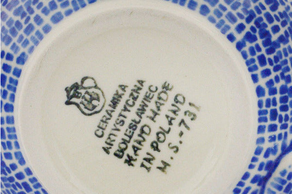 This Polish pottery Bubble Mug is made by Ceramika Artystyczna workshop in Boleslawiec, Poland. Manufacturer item number H7419Q. It is 4" high and measures 5½" by 4". The capacity of this Bubble Mug is 16.0 oz when filled to rim and it weighs 1.0 lbs.