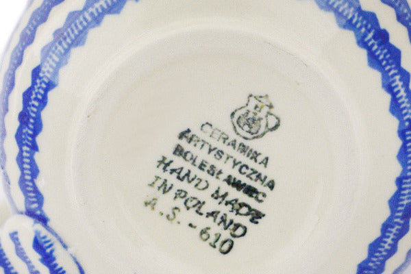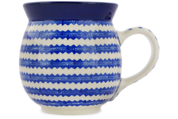 This Polish pottery Bubble Mug is made by Ceramika Artystyczna workshop in Boleslawiec, Poland. Manufacturer item number H7483Q. It is 4" high and measures 5½" by 4". The capacity of this Bubble Mug is 16.0 oz when filled to rim and it weighs 1.0 lbs. It is part of the Hypnotic Rings Collection.