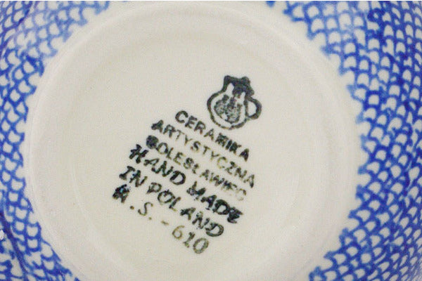 This Polish pottery Bubble Mug is made by Ceramika Artystyczna workshop in Boleslawiec, Poland. Manufacturer item number H7475Q. It is 4" high and measures 5½" by 4". The capacity of this Bubble Mug is 16.0 oz when filled to rim and it weighs 1.0 lbs.