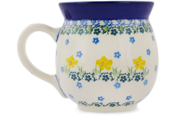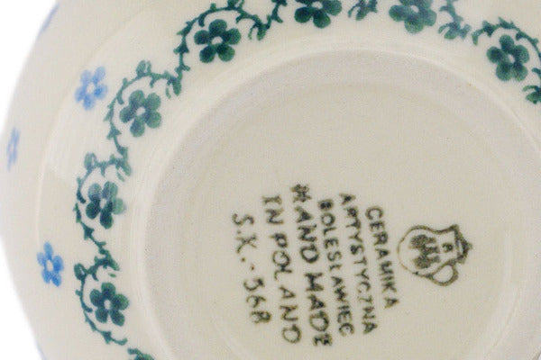 This Polish pottery Bubble Mug is made by Ceramika Artystyczna workshop in Boleslawiec, Poland. Manufacturer item number H8986Q. It is 4" high and measures 5½" by 4". The capacity of this Bubble Mug is 16.0 oz when filled to rim and it weighs 1.0 lbs. It is part of the Happy Hares Collection.