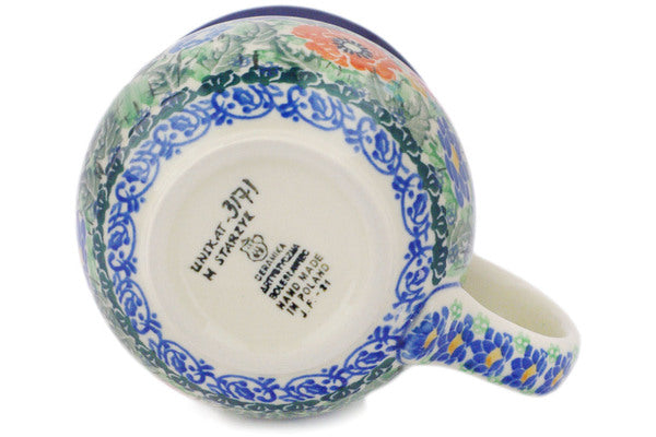 This is a Polish pottery Unikat (Signature) Bubble Mug, which means that it has been hand painted with both sponges and brushes and it is signed by the artist who painted it. Unikat pieces are the most intricate works of art. Larger Unikat items take hours of very careful work to finish.