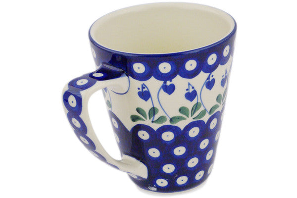 Polish Pottery 16 oz Mug Bleeding Heart Peacock