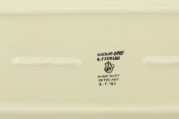 This is a Polish pottery Unikat (Signature) Platter with Handles, which means that it has been hand painted with both sponges and brushes and it is signed by the artist who painted it. Unikat pieces are the most intricate works of art. Larger Unikat items take hours of very careful work to finish.
