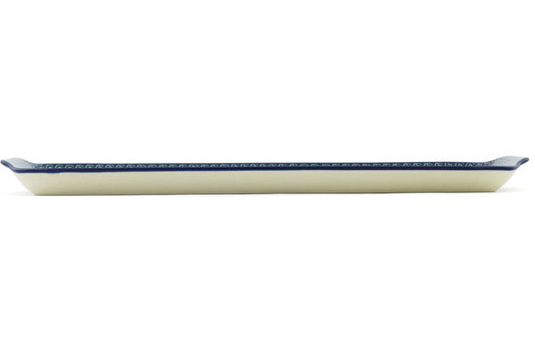 This Polish pottery Platter with Handles is made by Ceramika Artystyczna workshop in Boleslawiec, Poland. Manufacturer item number H8272G. It is 1" high and measures 16¼" by 5¾". The weight of this Platter with Handles is 2.1 lbs. The pattern was designed by artist Barbara Fidelus. It is part of the Spring Bouquet Collection.