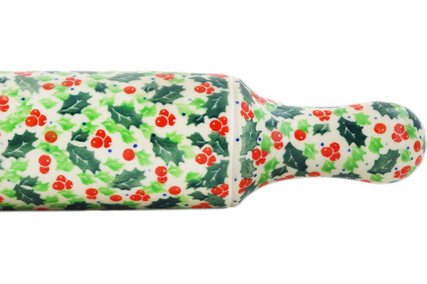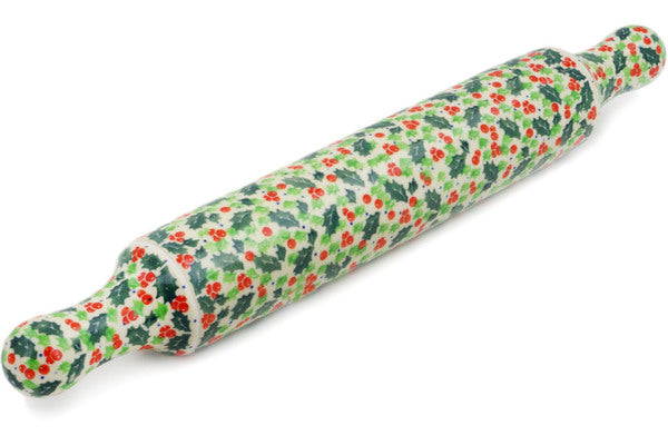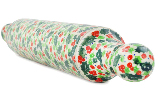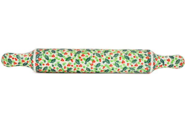 This Polish pottery Rolling Pin is made by Ceramika Artystyczna workshop in Boleslawiec, Poland. Manufacturer item number H2076L. It is 2½" high and measures 18" by 2½". The weight of this Rolling Pin is 1.3 lbs. The pattern was designed by artist Teresa Liana. It is part of the Festive Berries Collection.