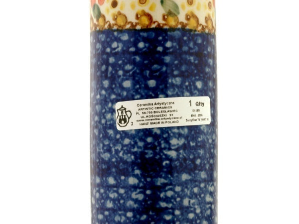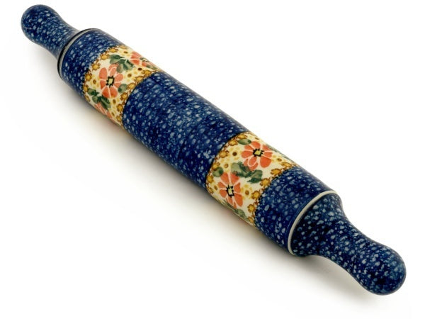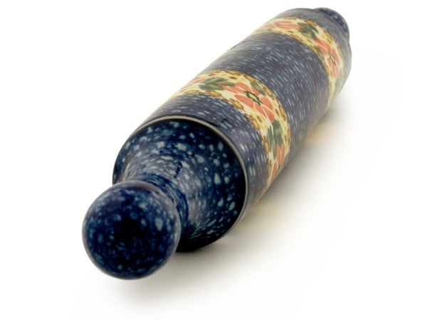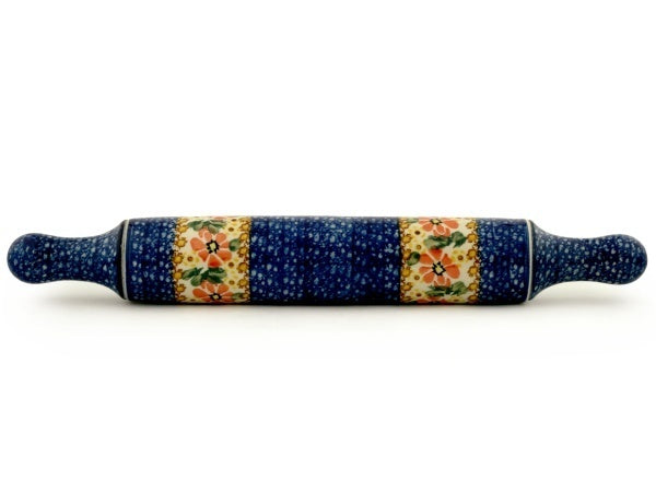 This Polish pottery Rolling Pin is made by Ceramika Artystyczna workshop in Boleslawiec, Poland. Manufacturer item number H5978A. It is 2½" high and measures 18" by 2½". The weight of this Rolling Pin is 1.3 lbs. The pattern was designed by artist Ewa Karbownik. It is part of the Hidden Sunflower Collection.