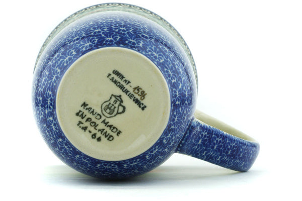 This is a Polish pottery Unikat (Signature) Mug, which means that it has been hand painted with both sponges and brushes and it is signed by the artist who painted it. Unikat pieces are the most intricate works of art. Larger Unikat items take hours of very careful work to finish.