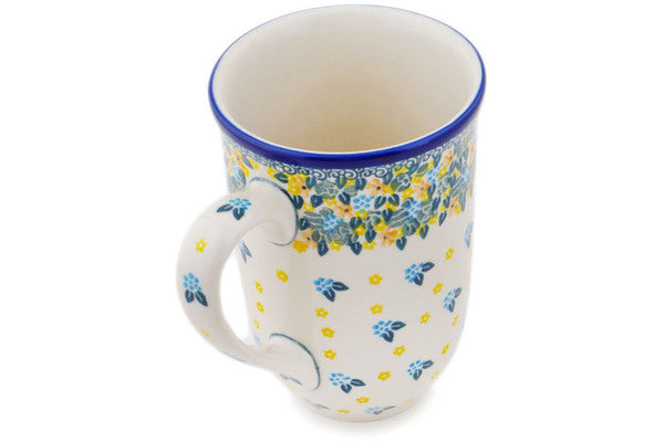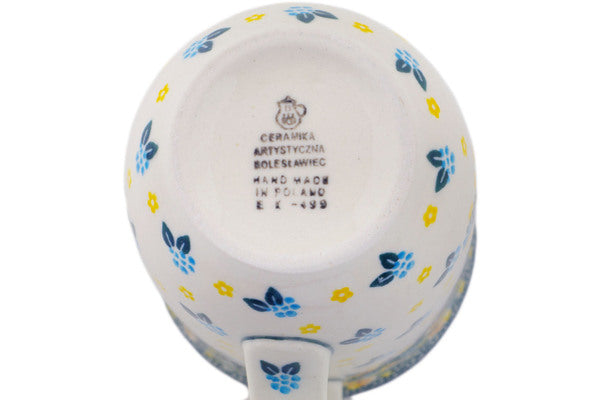 This Polish pottery Mug is made by Ceramika Artystyczna workshop in Boleslawiec, Poland. Manufacturer item number H9312Q. It is 5½" high and measures 5½" by 3¾". The capacity of this Mug is 19.1 oz when filled to rim and it weighs 1.1 lbs. It is part of the Sheep In The Meadow Collection.