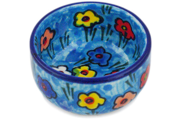 This Polish pottery Bowl is made by Ceramika Artystyczna workshop in Boleslawiec, Poland. Manufacturer item number H8621Q. It is 1¼" high and measures 2¼" by 2¼". The capacity of this Bowl is 1.4 oz when filled to rim and it weighs 0.2 lbs.