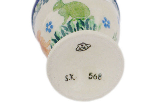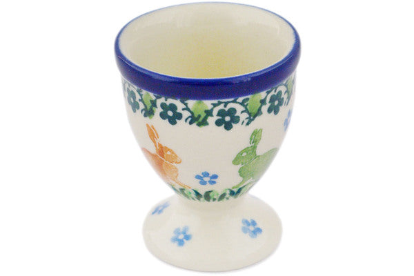 This Polish pottery Egg Holder is made by Ceramika Artystyczna workshop in Boleslawiec, Poland. Manufacturer item number H8977Q. It is 2¼" high and measures 2" by 2". The weight of this Egg Holder is 0.2 lbs. It is part of the Happy Hares Collection.