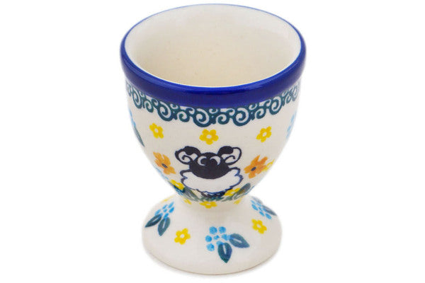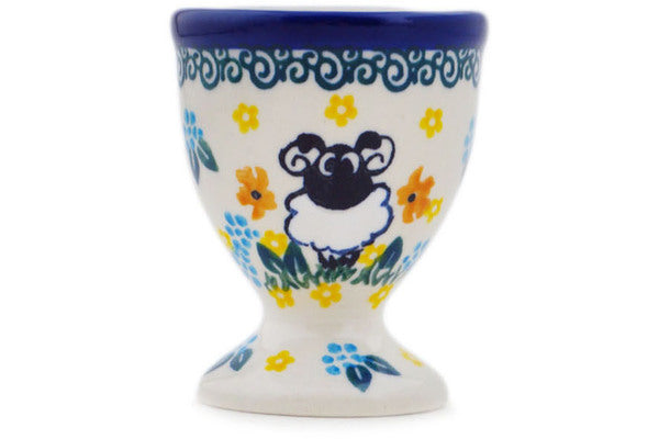This Polish pottery Egg Holder is made by Ceramika Artystyczna workshop in Boleslawiec, Poland. Manufacturer item number H9307Q. It is 2¼" high and measures 2" by 2". The weight of this Egg Holder is 0.2 lbs. It is part of the Sheep In The Meadow Collection.