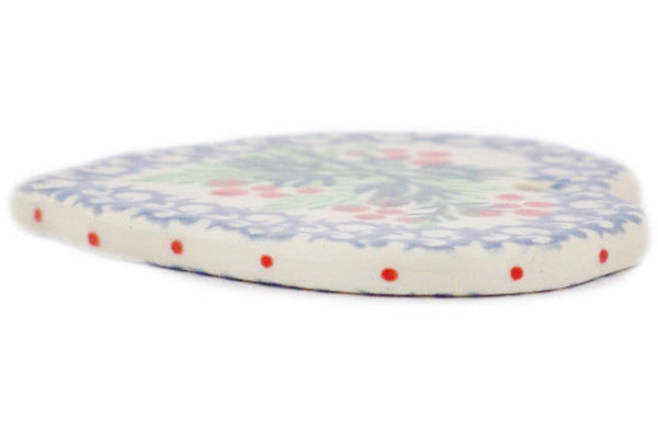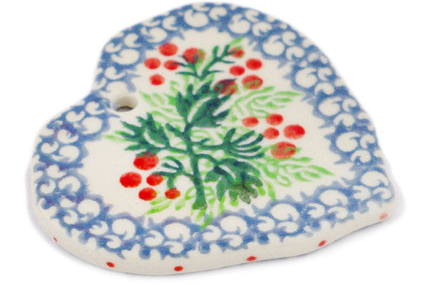 This Polish pottery Heart Pendant is made by Ceramika Artystyczna workshop in Boleslawiec, Poland. Manufacturer item number H5292Q. It is ¼" high and measures 2½" by 2½". The weight of this Heart Pendant is 0.1 lbs. The pattern was designed by artist Wirginia Cebrowska. It is part of the Red Rowan Collection.