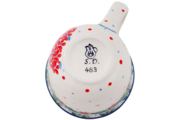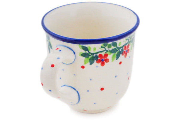 This Polish pottery Espresso Cup is made by Ceramika Artystyczna workshop in Boleslawiec, Poland. Manufacturer item number H9469Q. It is 2¼" high and measures 2¼" by 2¼". The capacity of this Espresso Cup is 2.4 oz when filled to rim and it weighs 0.2 lbs. It is part of the Princess In A Red Dress Collection.