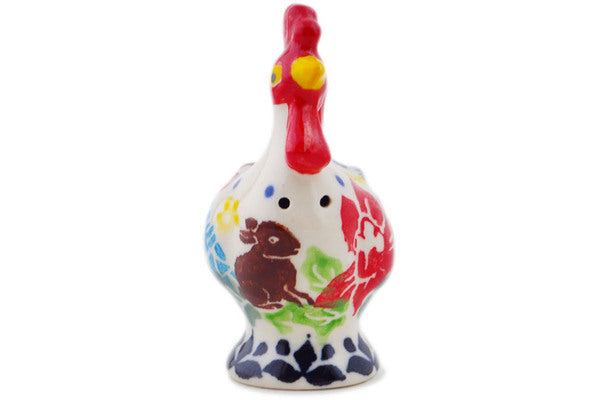 This Polish pottery Salt Shaker is made by Ceramika Artystyczna workshop in Boleslawiec, Poland. Manufacturer item number H0001Q. It is 2¼" high and measures 1½" by 1¼". The weight of this Salt Shaker is 0.0 lbs. The pattern was designed by artist Wirginia Cebrowska. It is part of the Chocolate Bunny Collection.