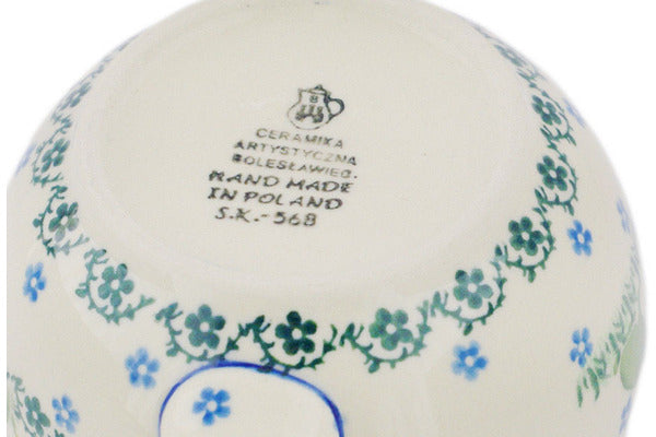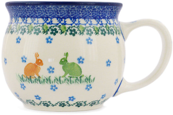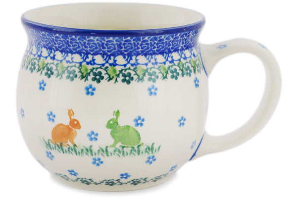 This Polish pottery Mug is made by Ceramika Artystyczna workshop in Boleslawiec, Poland. Manufacturer item number H8972Q. It is 3¾" high and measures 6¼" by 4½". The capacity of this Mug is 20.0 oz when filled to rim and it weighs 1.1 lbs. It is part of the Happy Hares Collection.