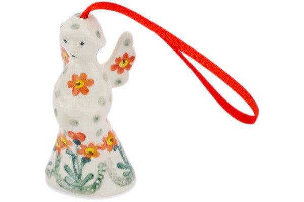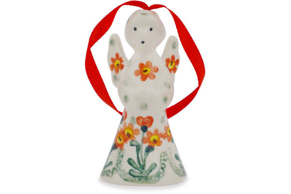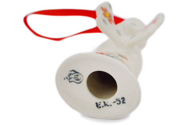 This Polish pottery Angel Ornament is made by Ceramika Artystyczna workshop in Boleslawiec, Poland. Manufacturer item number H4998Q. It is 3½" high and measures 1¾" by 1¾". The weight of this Angel Ornament is 0.1 lbs. The pattern was designed by artist Jolanta Okraska. It is part of the Peach Spring Daisy Collection.