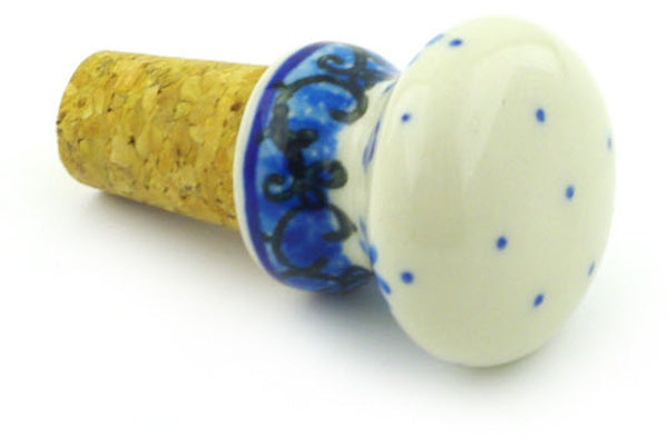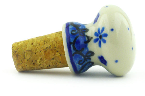 This Polish pottery Bottle Stopper is made by Ceramika Artystyczna workshop in Boleslawiec, Poland. Manufacturer item number H0137F. It is 2¾" high and measures 1¾" by 1¾". The weight of this Bottle Stopper is 0.1 lbs. The pattern was designed by artist Teresa Liana. It is part of the Blue Blooms Collection.