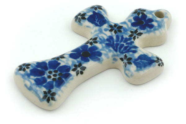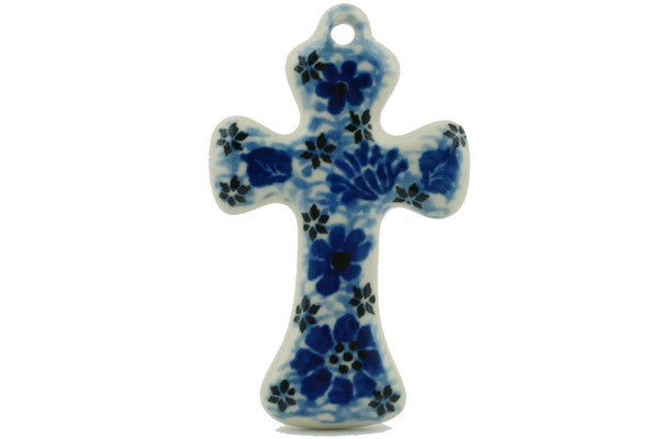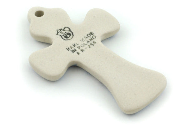 This Polish pottery Cross is made by Ceramika Artystyczna workshop in Boleslawiec, Poland. Manufacturer item number H2870I. It is ¼" high and measures 3¼" by 2". The weight of this Cross is 0.1 lbs. The pattern was designed by artist Teresa Liana. It is part of the Amazing Trope Collection.
