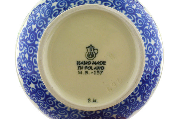 This Polish pottery Tea or Coffee Pot is made by Ceramika Artystyczna workshop in Boleslawiec, Poland. Manufacturer item number H0109F. It is 5¼" high and measures 8¼" by 5". The capacity of this Tea or Coffee Pot is 30.4 oz when filled to rim and it weighs 1.4 lbs. The pattern was designed by artist Agnieszka Damian. It is part of the Blue Phlox Collection.