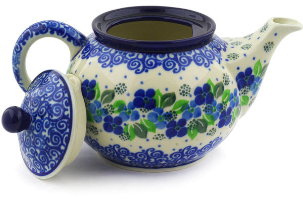 Polish Pottery 3½ cups Tea or Coffee Pot Blue Phlox