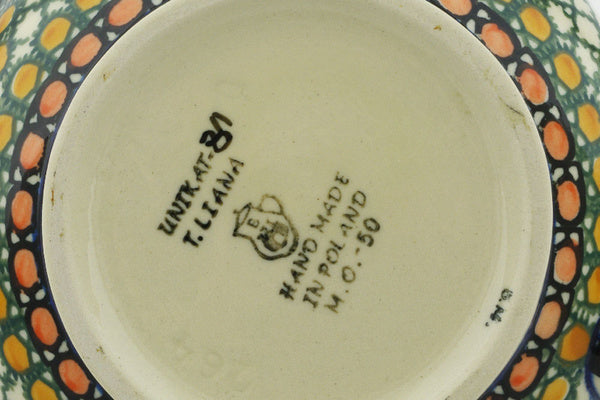 This is a Polish pottery Unikat (Signature) Tea or Coffee Pot, which means that it has been hand painted with both sponges and brushes and it is signed by the artist who painted it. Unikat pieces are the most intricate works of art. Larger Unikat items take hours of very careful work to finish.