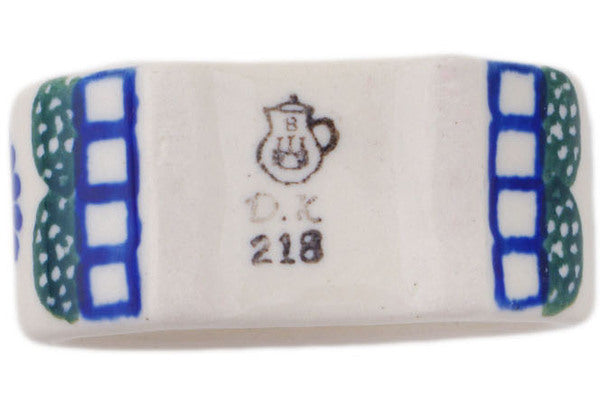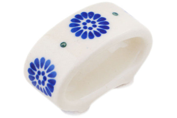 This Polish pottery Napkin Ring is made by Ceramika Artystyczna workshop in Boleslawiec, Poland. Manufacturer item number H5642Q. It is 1½" high and measures 2¾" by 1". The weight of this Napkin Ring is 0.1 lbs. The pattern was designed by artist Teresa Liana. It is part of the Maia Collection.