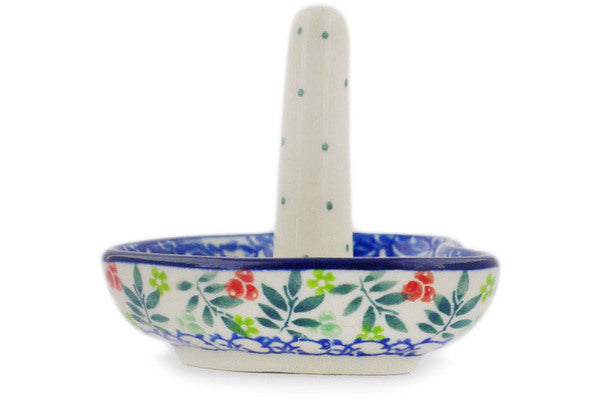 This is a Polish pottery Unikat (Signature) Ring Holder, which means that it has been hand painted with both sponges and brushes and it is signed by the artist who painted it. Unikat pieces are the most intricate works of art. Larger Unikat items take hours of very careful work to finish.