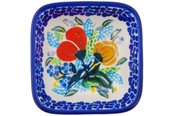Polish Pottery 3" Square Bowl Blooming Joy UNIKAT