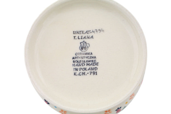This Polish pottery Beer Mug is made by Ceramika Artystyczna workshop in Boleslawiec, Poland. Manufacturer item number H7278Q. It is 6" high and measures 6¼" by 4¾". The capacity of this Beer Mug is 33.8 oz when filled to rim and it weighs 1.5 lbs. The pattern was designed by artist Teresa Liana. It is part of the Spring Meadow Collection.