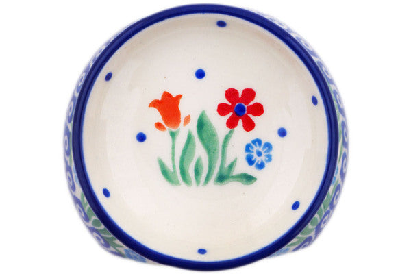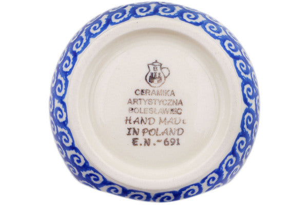 This Polish pottery Aroma Oil Burner Lamp is made by Ceramika Artystyczna workshop in Boleslawiec, Poland. Manufacturer item number H1591Q. It is 3½" high and measures 3¼" by 3". The capacity of this Aroma Oil Burner Lamp is 0.7 oz when filled to rim and it weighs 0.5 lbs. It is part of the Babcia's Garden Collection.