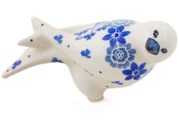 This Polish pottery Bird Figurine is made by Ceramika Artystyczna workshop in Boleslawiec, Poland. Manufacturer item number H0360Q. It is 2¼" high and measures 3¾" by 1½". The weight of this Bird Figurine is 0.1 lbs. The pattern was designed by artist Maria Starzyk. It is part of the Blue Country Field Collection.